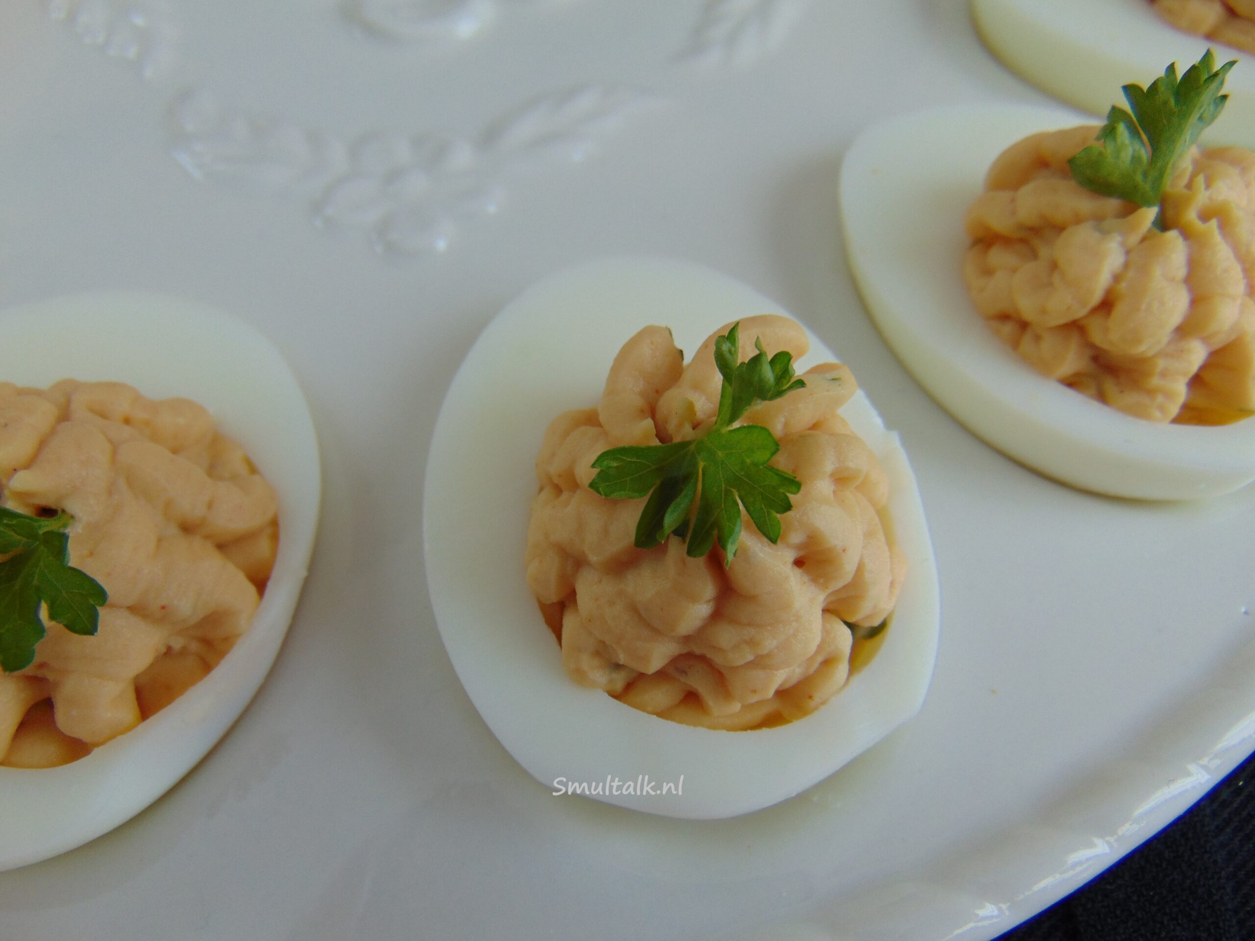 Gevulde eieren, dit is toch een echte klassieker onder de borrelhapjes. Ze mogen niet ontbreken bij een borrelplank of op een verjaardag. Je hebt natuurlijk zo ontzettend veel verschillende soorten gevulde eieren. Dit recept hieronder is redelijk klassiek.