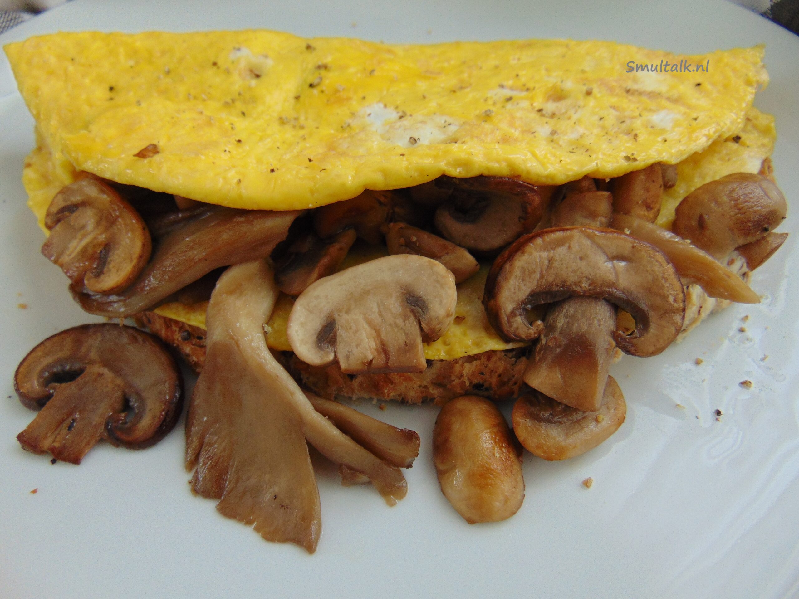 Heerlijk, op z’n tijd een omelet met paddenstoelen. Lekker op een boterham die besmeerd is met wat truffelmayonaise en dan wat plakjes kaas. Dan de omelet met de paddenstoelen erop en smullen maar. Ik eet dit graag met de lunch, maar voor ontbijt kan dit natuurlijk ook.